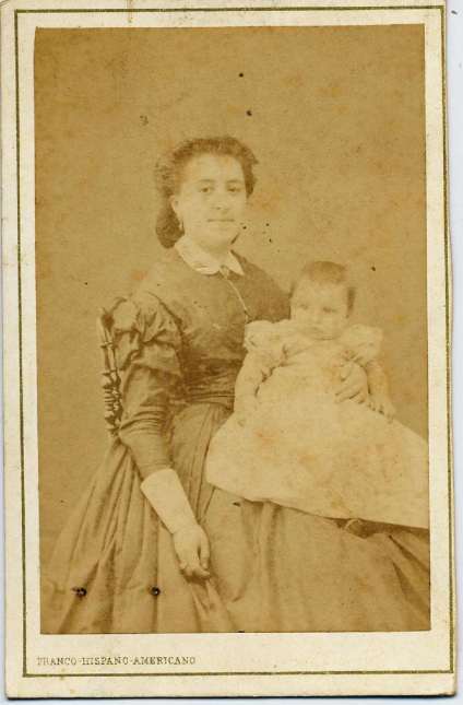 1863. FOTOGRAFOS ESPAÑOLES – Franco-Hispano-Americano, Barcelona. Retrato de señora Reig con bebé, carte de visite, 1863. Album Reig. Hesperus´ Collection