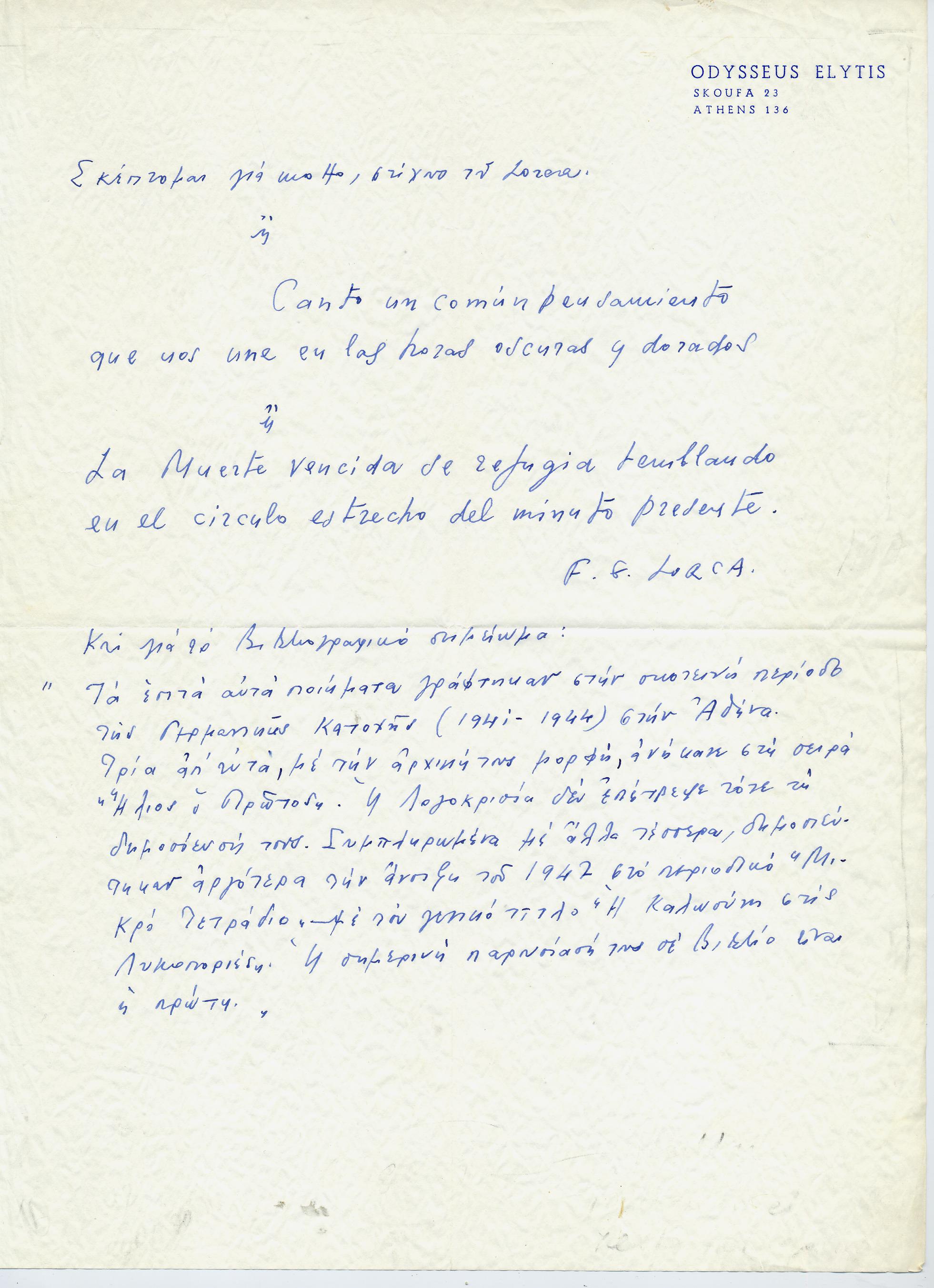 Η ΚΑΛΩΣΥΝΗ ΣΤΙΣ ΛΥΚΟΠΟΡΙΕΣ – τέσσερα γράμματα του Ελύτη*