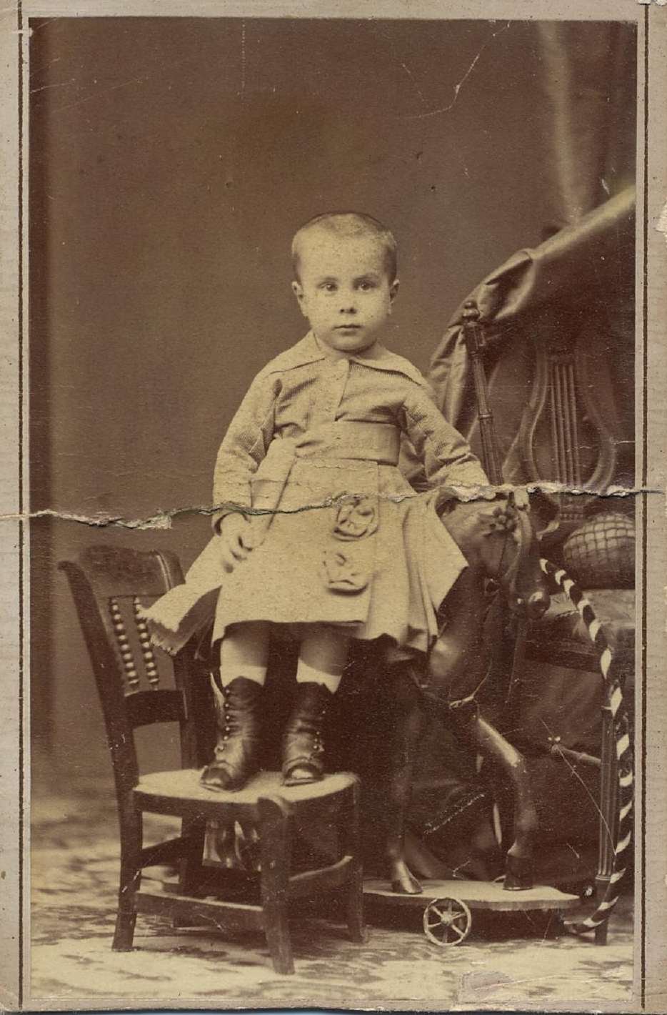 1880. FOTOGRAFOS ESPAÑOLES – Hebert (1819-1891), Madrid. Niño con caballito,carte de visite, ca. 1880. Album Lopez, Hesperus´ Collection