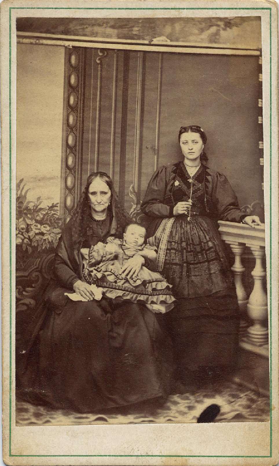 1880. FOTOGRAFOS ESPAÑOLES – Perez Sierra, Vicente (1842-1893) Llanes. Madre y abuela con niño, carte de visite., ca, 1880. Hesperus´ Collection