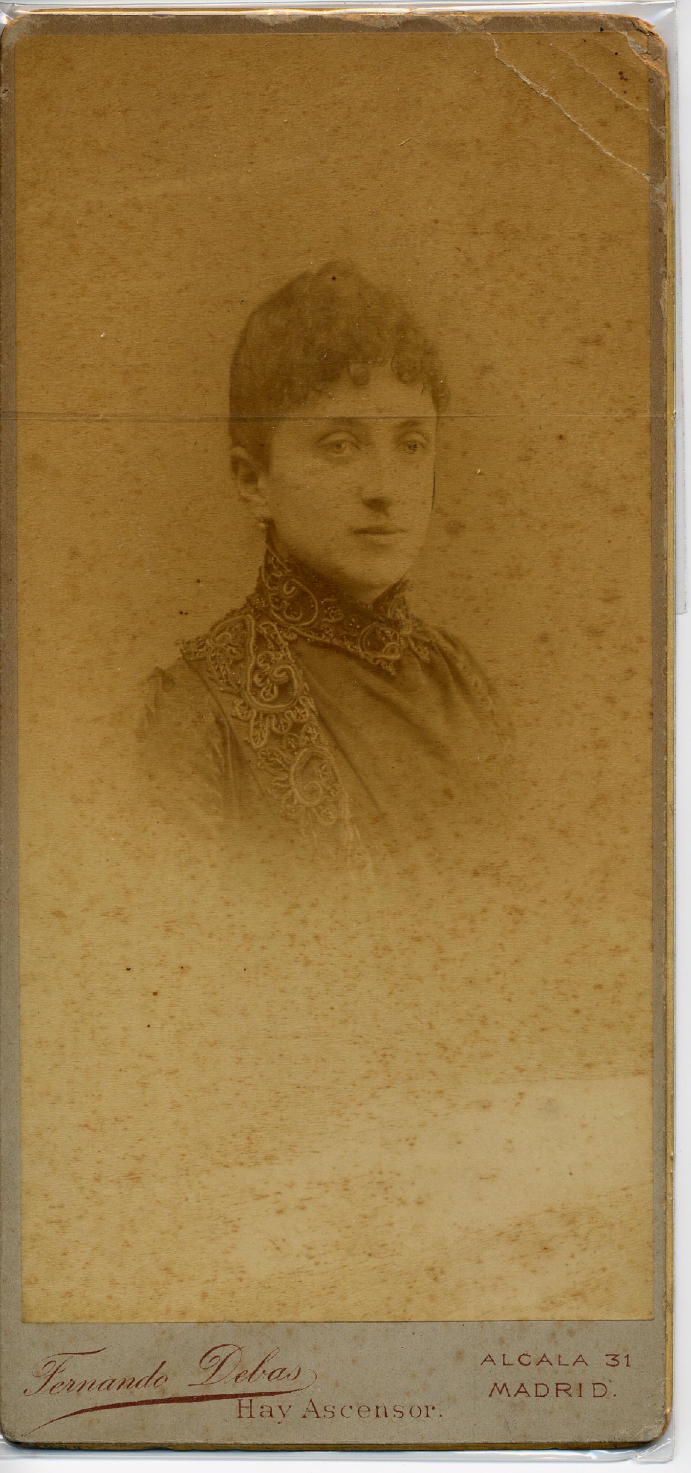 1885. FOTOGRAFOS ESPAÑOLES – Debas, Fernando, Madrid. Retrato de dama, formato 9,5 X 18,5cm., ca. 1885. Hesperus´ Collection