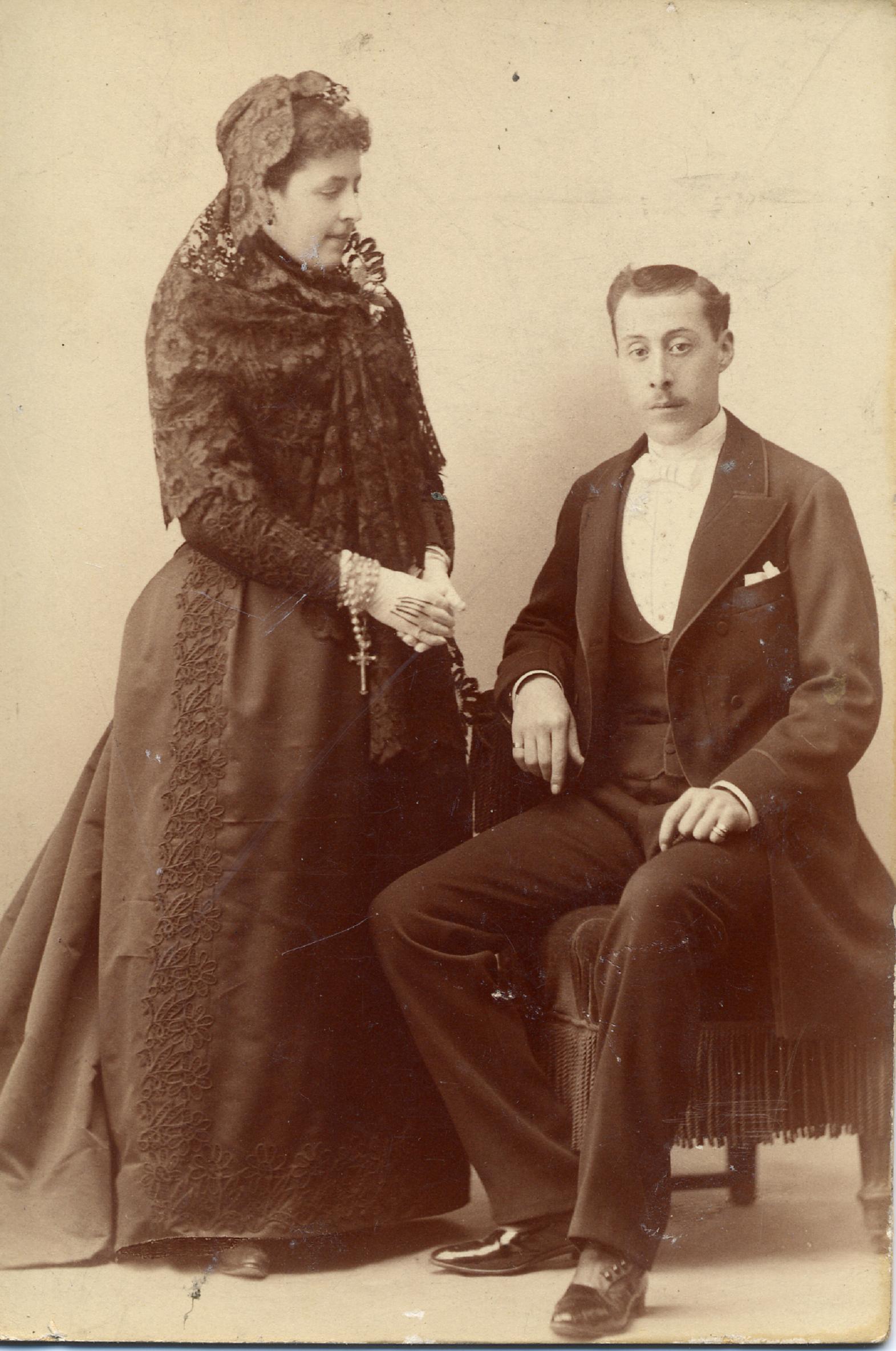 1886. FOTOGRAFOS ESPAÑOLES – Alviach, Manuel (1846-1924), Madrid. Dama y caballero, ca. carte cabinet, 1886. Hesperus´ Collection