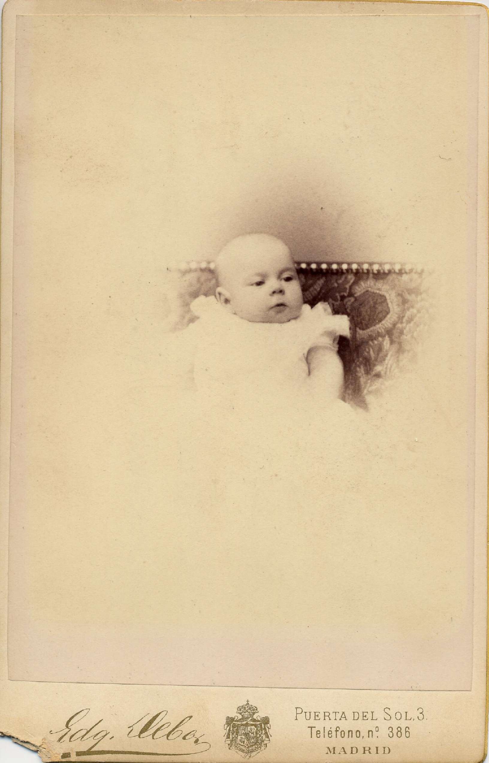 1887. FOTOGRAFOS ESPAÑOLES – Debas, Edg., Madrid. Infante Alfonso XIII bebé, carte de visite, 1887. Album Lopez, Hesperus´ Collection