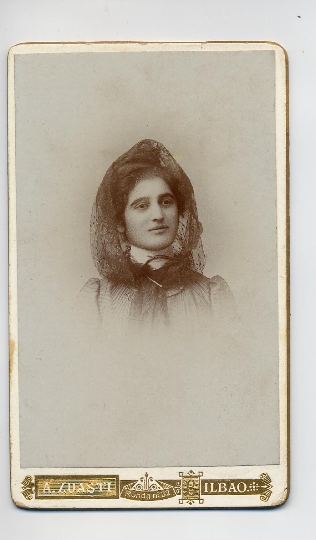 1888. FOTOGRAFOS ESPAÑOLES – Zuasti, A., Bilbao. Busto de dama, carte de visite, ca. 1888. Album Sotomayor, Hesperus´ Collection