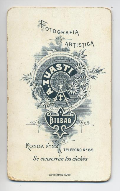 1888. FOTOGRAFOS ESPAÑOLES – Zuasti, A., Bilbao. CDV ca. 1888. Album Sotomayor, Hesperus´ Collection