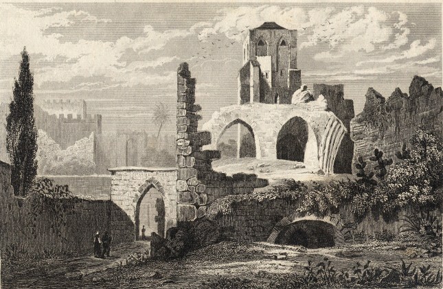 TIERRA SANTA – Ruinas de la Iglesia de los Siete Dolores en Jerusalen – grav. Gaucherel y Lemaître, 1842