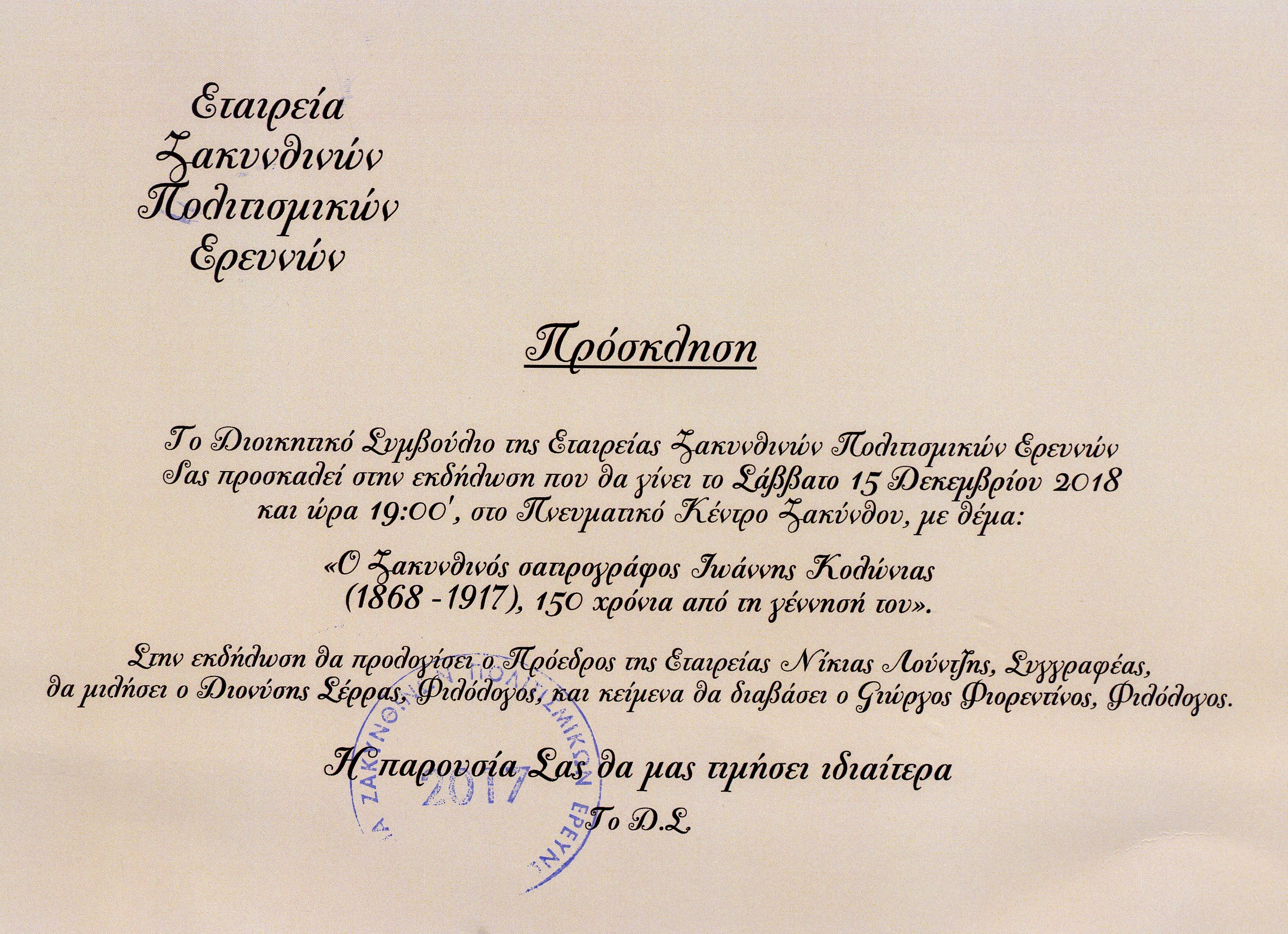Tags: Διονύσης Σέρρας, Εταιρεία Ζακυνθινών Πολιτισμικών Ερευνών, Ζακυνθινά
