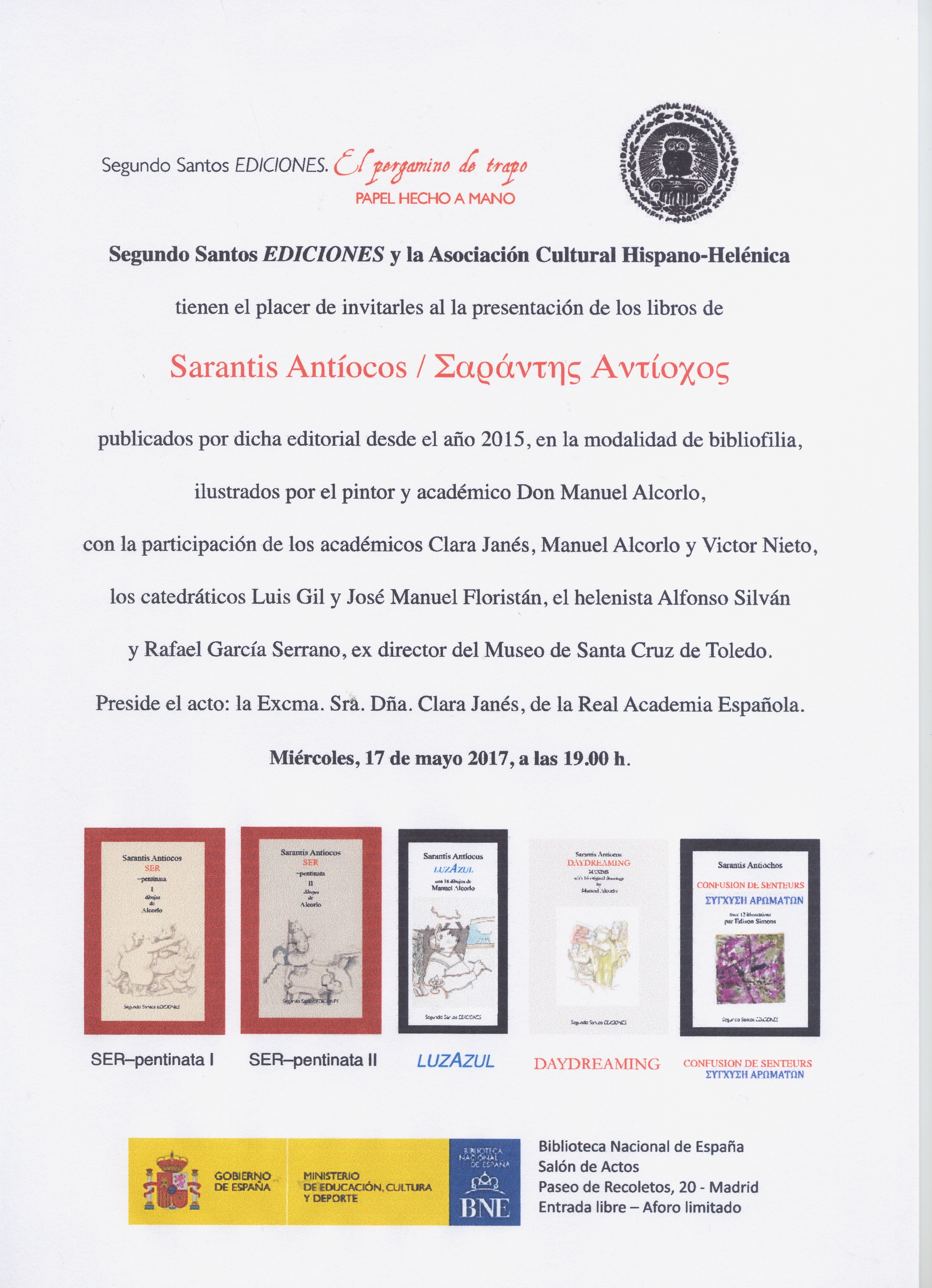 Posted by katalogia on May 8, 2017 in Ελληνο-Ισπανικά, ΠΟΛΙΤΙΣΤΙΚΗ ΕΠΙΚΑΙΡΟΤΗΤΑ, Σαράντης Αντίοχος, βιβλία του Σαράντη Αντίοχου