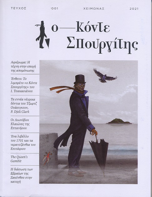 Χθες το Ταχυδρομείο μας πρόσφερε μια ευχάριστη έκπληξη. Λάβαμε το πρώτο τεύχος ενός αξιοπρόσεκτου ζακυνθινού περιοδικού. Τίτλος του: “ο Κόντε Σπουργίτης”, που παραπέμπει σε ομότιτλο έργο του λαοφιλούς ζακυνθινού ποιητή Ιωάννου Γ. Τσακασιάνου (1853-1908) και λειτουργεί ως ουσιώδες οξύμωρον. Στόχος διακηρυγμένος του περιοδικού είναι να αποτελέσει “γέφυρα” ανάμεσα στην τοπική πολιτιστική/πολιτισμική παράδοση και το καινούργιο, χωρίς σύνορα. Στόχος που επιβεβαιώνεται από το περιεχόμενο του πρώτου αυτού τεύχους, με ζακυνθινή ιδιοτυπία και κοσμοπολιτικό ενδιαφέρον και προοπτική.