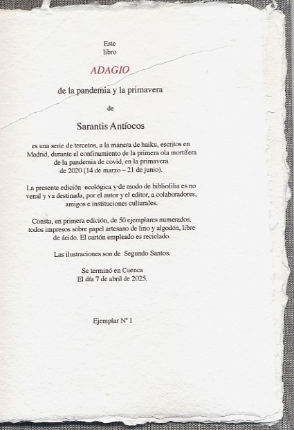 Nuevo libro de Sarantis Antíocos, en edición de bibliofilia de maestro editor Segundo Santos.