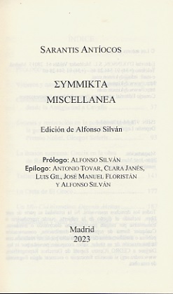 PRÓLOGO de helenista Alfonso Silván para el libro de Sarantis Antíocos ΣΥΜΜΙΚΤΑ – MISCELLANEA, publicado en Madrid por la editorial DYKINSON, en su conocida collección CLÁSICOS DYKINSON.