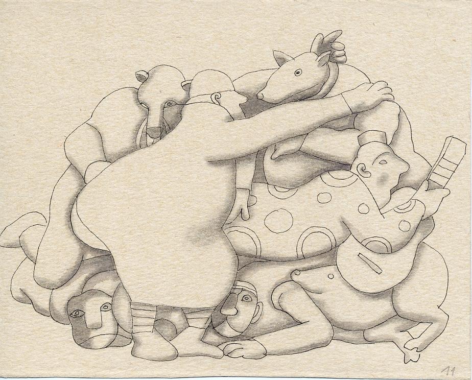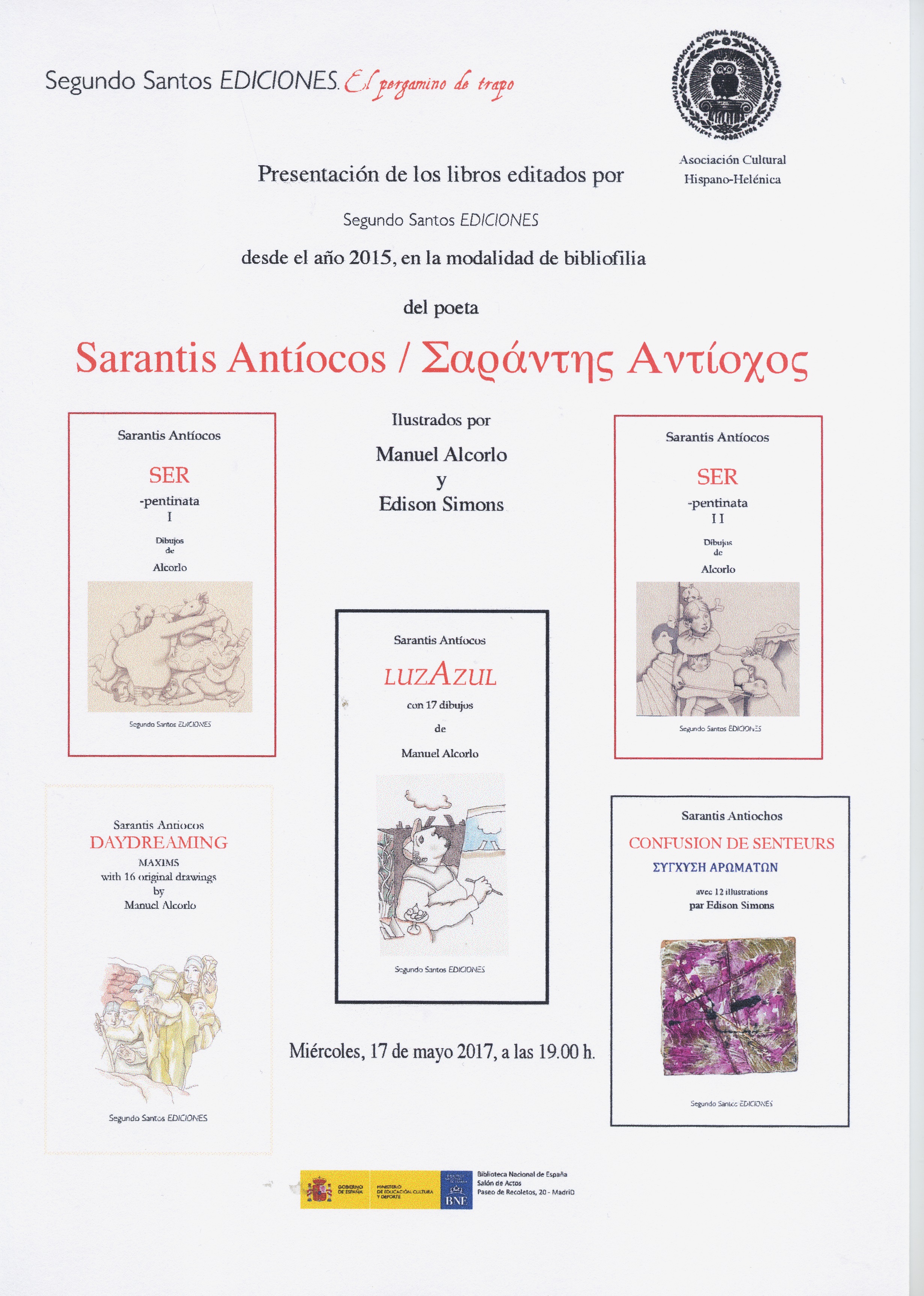 Σχέδια/σκίτσα του κορυφαίου Ισπανού ζωγράφου και ακαδημαϊκού Manuel Alcorlo, από την εικονογράφηση του βιβλίου του Σαράντη Αντίοχου SER -pentinata I & II, έκδοση βιβλιοφιλική και οικολογική του Segundo Santos EDICIONES, 2015.