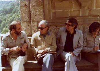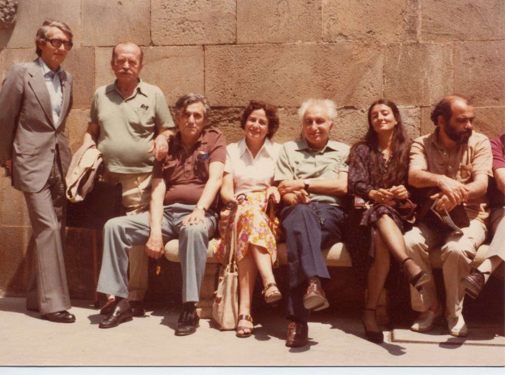 Περίπατος στους κήπους της Μονής Μοντσεράτ (Montserrat). Από αριστερά: Αλεξανδρος Αργυρίου, Σαράντης Αντίοχος, Αλέξανδρος Κοτζιάς, Θανάσης Βαλτινός.
