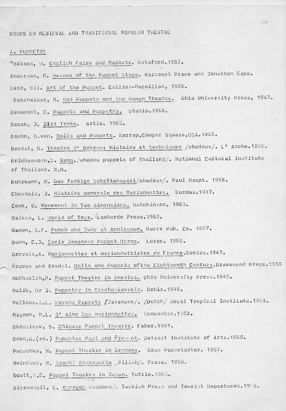 Book Exhibition on Medieval and Popular Theatre, Zante, August 1976