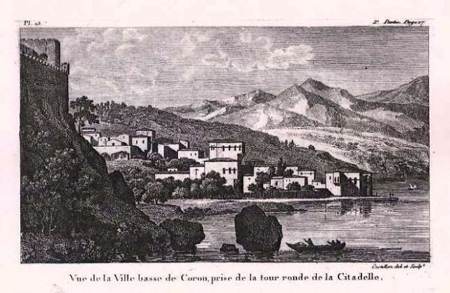 * Γκραβούρες του Antoine Laurent Castellan (1772-1838), από το βιβλίο του Lettres sur la Morée et les iles Cérigo, Hydra et Zante (vols. 1 et 2). Paris, chez H. Agasse, 1808. Ο Castellan, (γάλλος ζωγράφος, αρχιτέκτονας, χαράκτης, συγγραφέας και μέλος της Γαλλικής Ακαδημίας Τεχνών), ταξιδεύοντας από τη Μασσαλία προς την Κωνσταντινούπολη πέρασε τον Ιανουάριο του 1797 από τα Κύθηρα, τη Νεάπολη της Μονεμβασίας, την Ύδρα και το Σούνιο, μέρη τα οποία και περιηγήθηκε. Στην επιστροφή του από την Πόλη σταμάτησε και περιηγήθηκε την Κορώνη, το Ναβαρίνο, τα Φιλιατρά, τη Γαστούνη και τη Ζάκυνθο. Στο δίτομο αυτό βιβλίο του περιγράφει τις εντυπώσεις του και απεικονίζει με χαρακτικά του, πάνω σε δικά του σχέδια, τα αρχαιολογικά, αρχιτεκτονικά και άλλα αξιοθέατα, καθώς και σκηνές από τις τοπικές συνήθειες και την καθημερινή ζωή. Στη Ζάκυνθο έφτασε στις 9 Ιουλίου 1797. Έμεινε μόνο λίγες ημέρες στο νησί, στη διάρκεια των οποίων επισκέπτηκε τις πηγές “κατραμιού” στο Κερί. Από τη Ζάκυνθο μας έδωσε μόνο δύο εικόνες: την Πλατεία Αγίου Μάρκου και τις τοπικές ενδυμασίες με φόντο τον Καστρόλοφο, τις οποίες έχουμε ήδη αναρτήσει σε άλλο post στο παρόν ιστολόγιο.