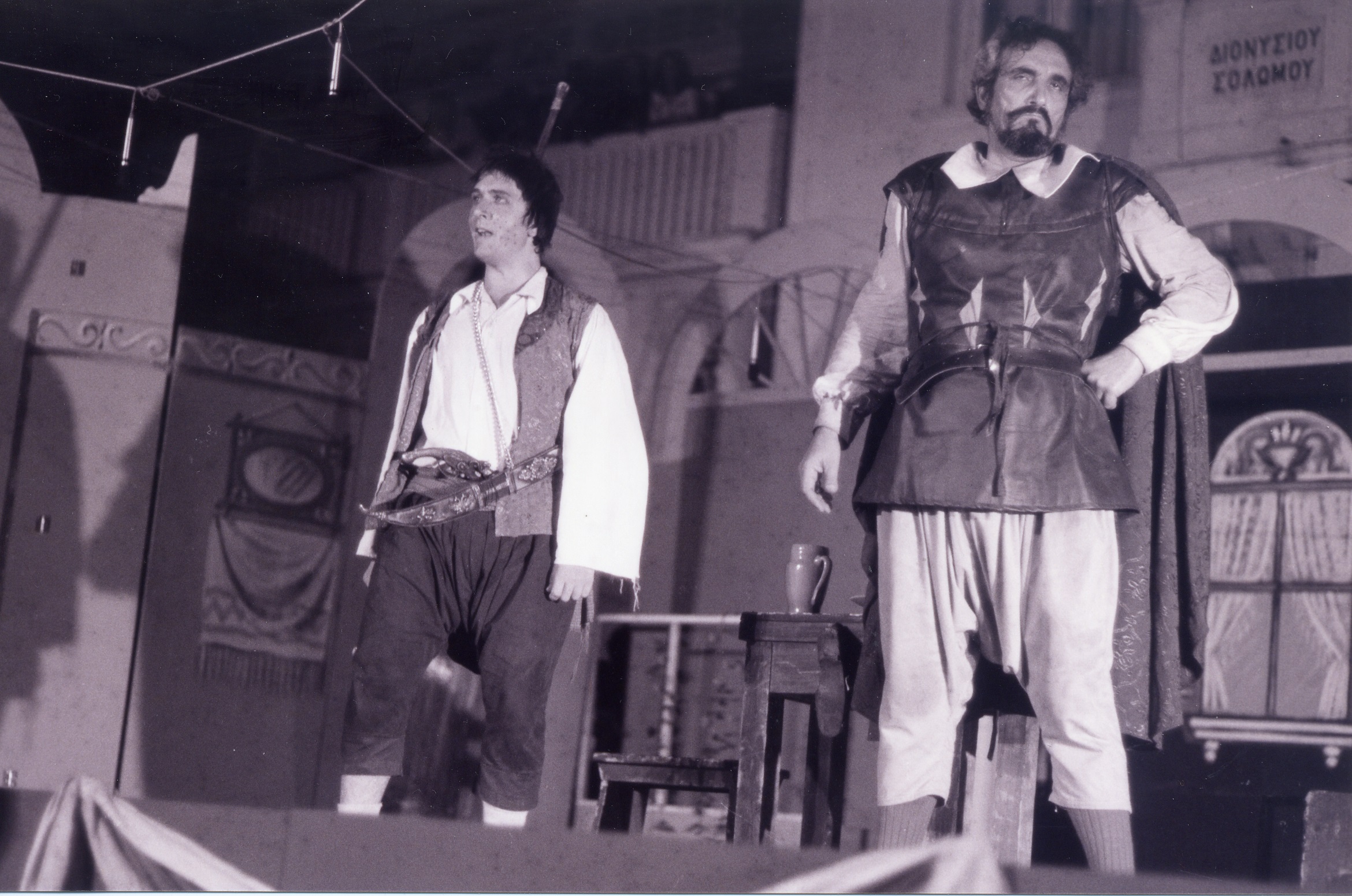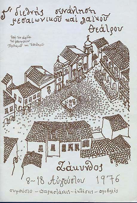 στη Ζάκυνθο, στο πλαίσιο της Τέταρτης Διεθνούς Συνάντησης Μεσαιωνικού και Λαϊκού Θεάτρου, 7 Αυγούστου 1977.