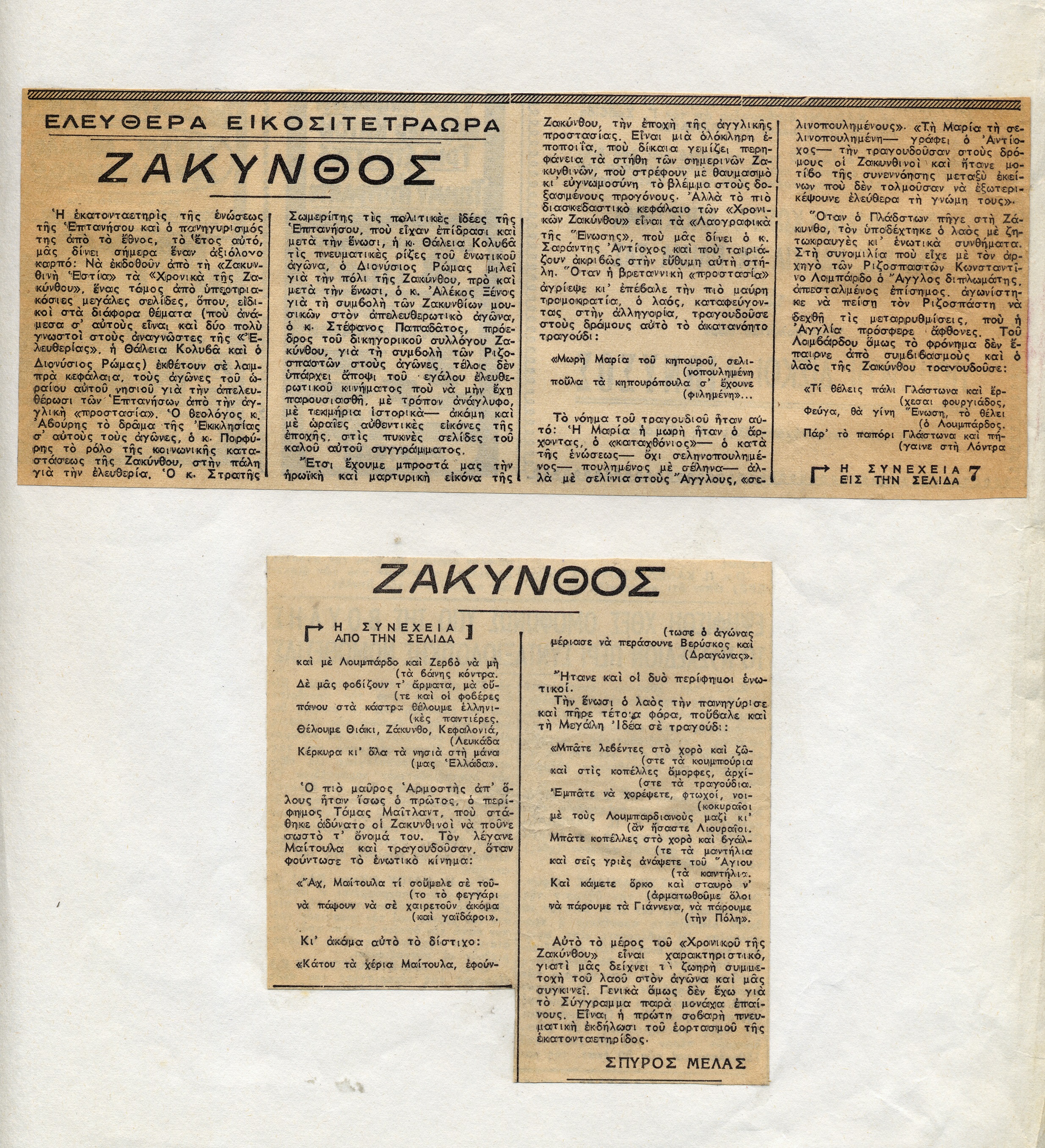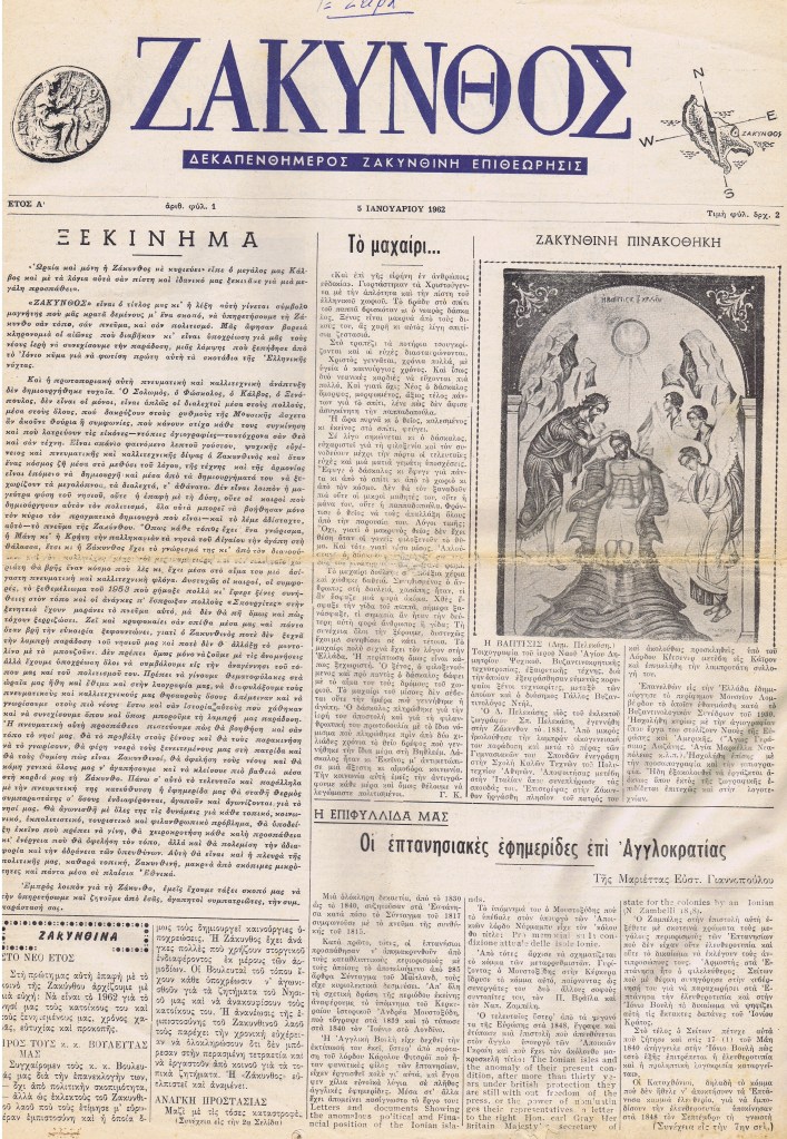 από την εφημερίδα “Ζάκυνθος”, περίοδος Α’, (1962-1963)